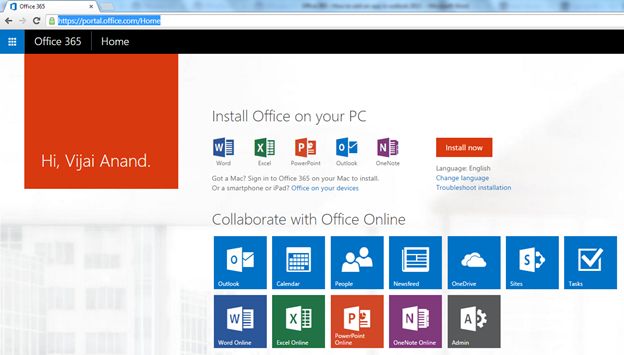 - Navigate to the Office 365 developer site. URL: https://portal.office.com/Home