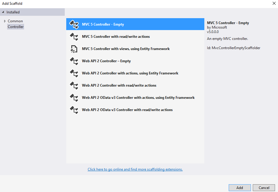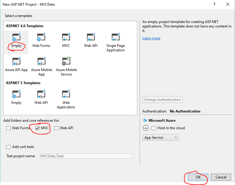 Create a new MVC Application and select Empty Template as in the following screenshot: