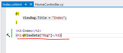 ViewBag Syntax is easier than ViewData, no need to write extra [] brackets, It's simple, so now write the following code in your 'Homecontroller'