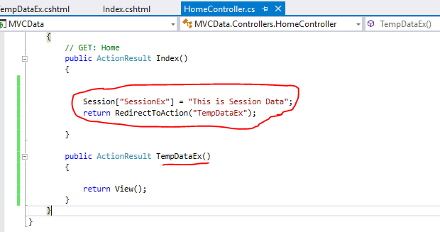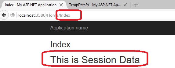 Let's check Session, it works same as the ASP.NET session and maintain data until you close the browser. Now set session in Index Method and access in both view Index and TempDataEx.