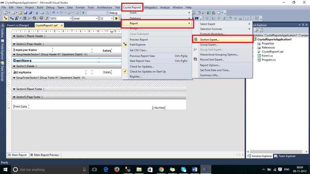 In this article we will learn conditional formatting on Field in Crystal Reports. Will display salary of each employee and highlight the row if the salary is greater than 25,000 in red.