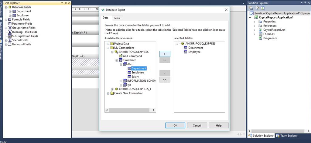 Step 3: from the database Expert select the Salary table and click on ‘>’ button and click ‘OK’ Button,