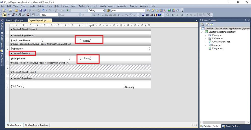Just Drag and Drop Salary field in Details Section of Crystal Report,