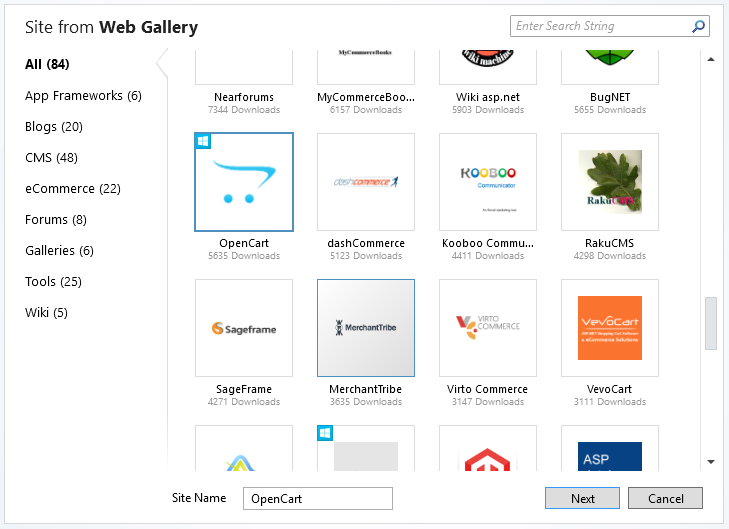 Once you complete the setup just open WebMatrix, Click on New, then App Gallery.