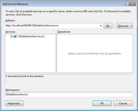 Here, I have taken the service Url and Context object as " ODataDemoEntities ".