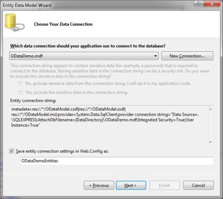 So, here the entity name is OdataDemoEntities. After clicking next,