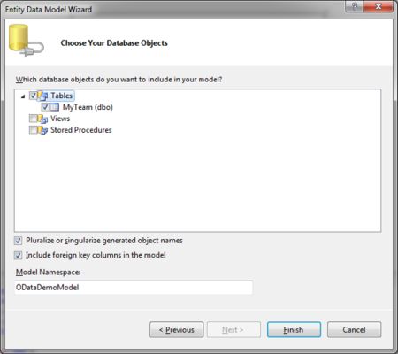 Step 3 : Add an ADO.net Entity model to a web application so that we can expose MyTable using the Entity Framework.