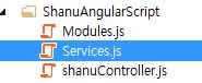 AngularJS Controller: Here we add the reference to the Angular.js JavaScript, our Module.js and Services.js. The same as for services. For the controller I have given the name "AngularJsShanu_WCFController". In the Controller I have done all the business logic and returned the data from the WCF JSON data to our MVC HTML page.