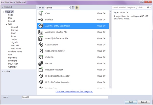 Services.js: Here we provide a name for our service and we use this name in shanucontroller.js. Here for the Angular service I have given the name "AngularJs_WCFService". You can provide your own name but be careful of changing the name in Controllers.js. AngularJS can receive JSON data. Here we can see I have provided our WCS service URL to get the Item details as JSON data. To insert an Item information result to the database we pass the data as JSON data to our WCFinsert method as a parameter.