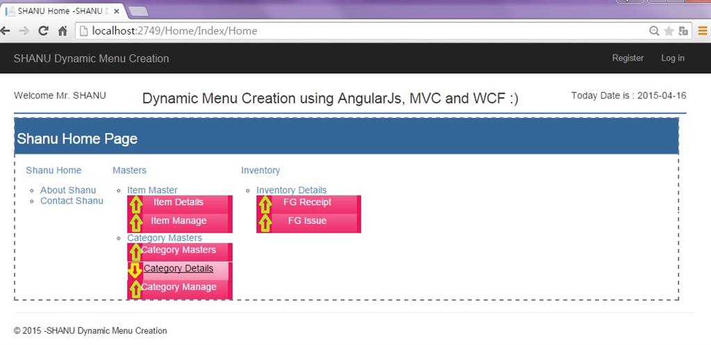 This article is not focused on menu management but in this article we will see in detail how to create a Menu Master and Menu Detail Table. Insert a sample Menu Item to our Database Tables. Display the Menu from the database dynamically to our MVC Web page using AngularJS and WCF Rest Service. This article will explain: