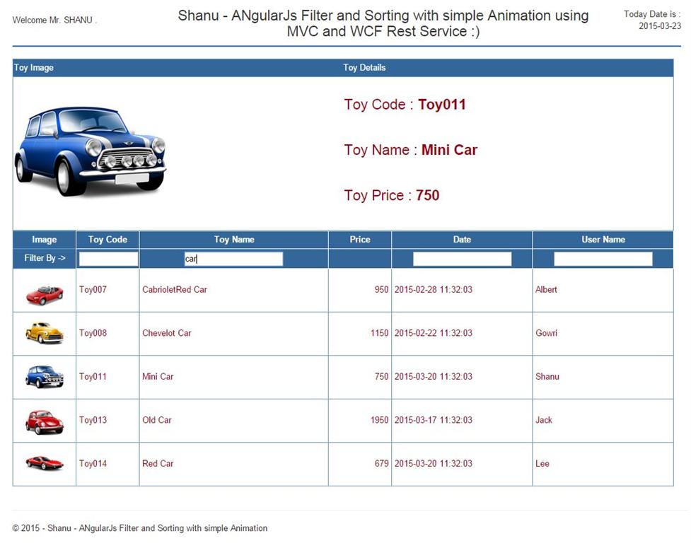 - <h3>Shanu - ANgularJs Filter and Sorting with simple Animation using MVC and WCF Rest Service :)</h3>