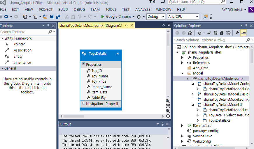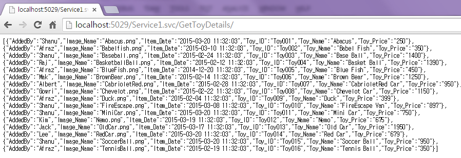 We will create a ToysDetails table under the Database ToysDB. The following is the script to create a database, table and sample insert query. Run this script in your SQL Server. I have used SQL Server 2012.