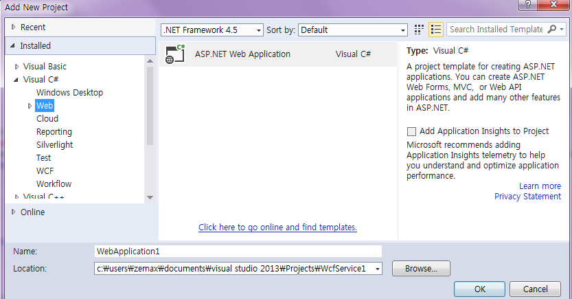 Create WCF REST ServiceOpen Visual Studio 2013 then select "File" -> "New" -> "Project..." then select WCF Service Application then select your project path and name your WCF service and click OK.