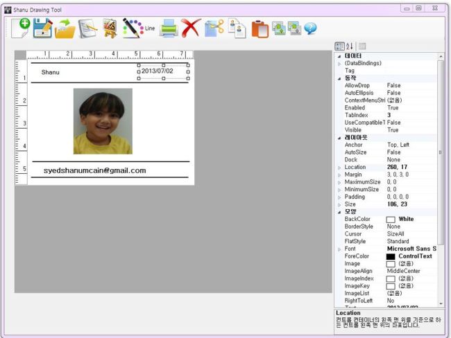 The Image Drawing Tool software application was developed to design your own Images with , add text, line, and picture. The Image Drawing Tool can be printed to any selected printer. The final design can be saved as XML format for reuse which can also be loaded from the saved XML file. This simple C# application allows the user to: