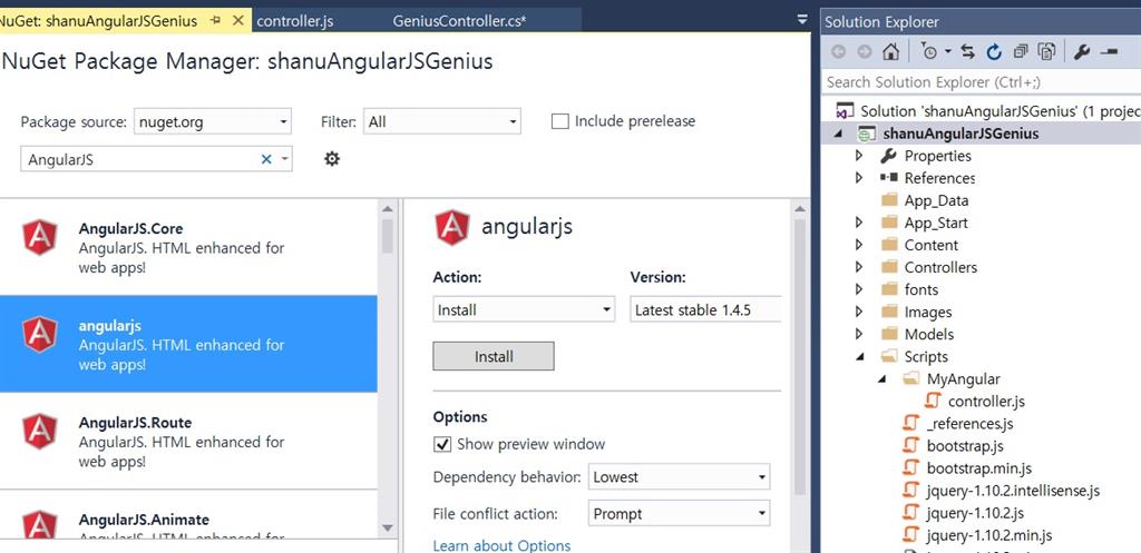 The AngularJS Model View Whatever (MVW) pattern is similar to the MVC and MVVM patterns. In our example I have used Model, View and Service. In the code par, let's see how to install and create AngularJS in our MVC application.