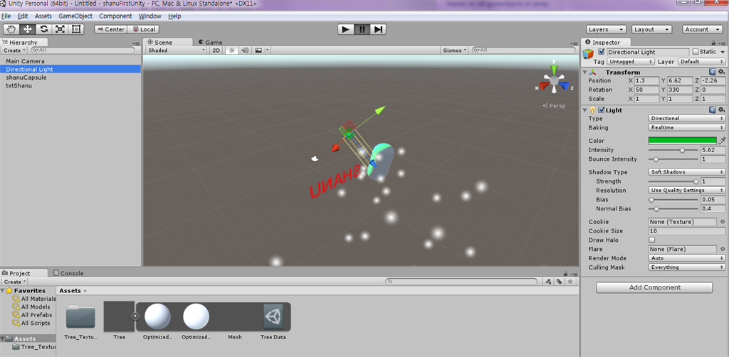 Now in the property window we can see I have selected the Green color for the Directional Light Object and I have increased the Identity of the Light Object from the property window.