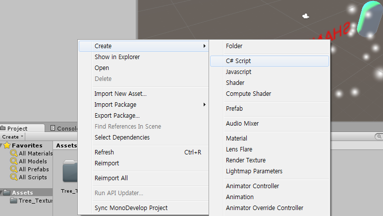To add the C# script file right-click on the project window as in the following and select Create, then click on C# Script.![]()