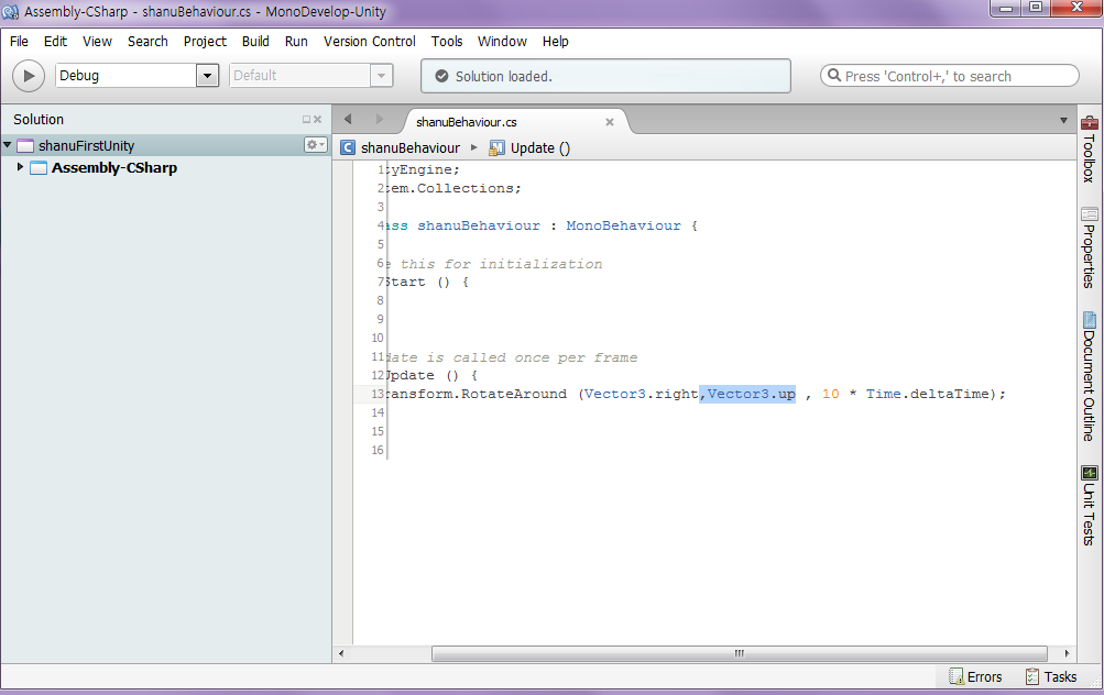 We can see the C# Script file will be opened in the Mono Editor as in the following screenshot.