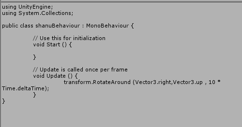 Here we can see I have written a simple code on the Update() Method to rotate the objects in a set of interval times.