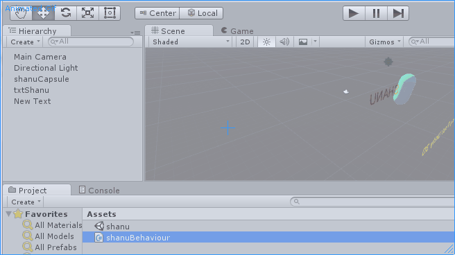 So far we have added our basic design to the game application. Now let's see how to add some basic actions like rotating our 3D Capsule and 3D Text Object by writing a simple C# Script.