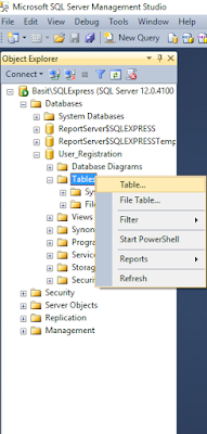 - Right click on Tables and click on Table to create new table.