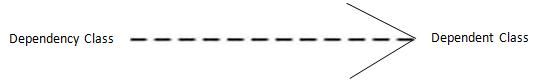 - Dependency: also called a using relationship, which means, one class is dependent on another class.