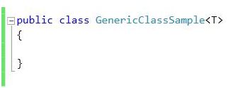 To start with we will be creating a class type that specifies it to be generic using the following syntax: