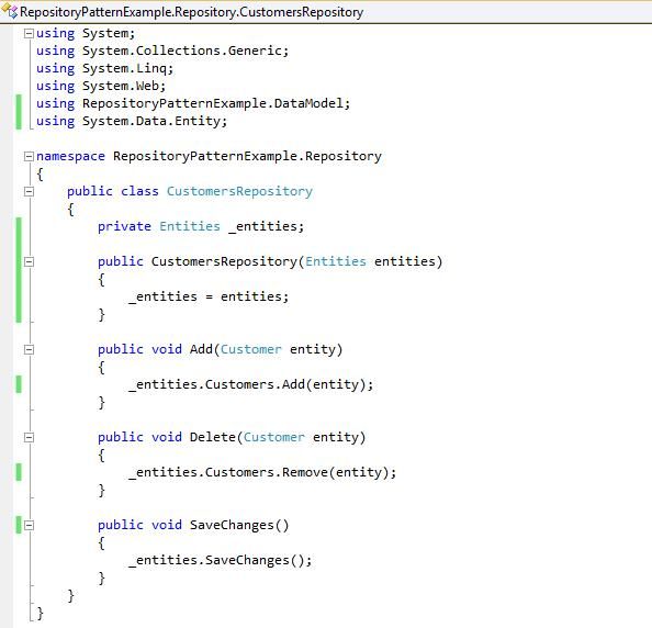 To understand this concept, consider the following implementation of the Repository Pattern using a non-generic repository, for a Customer entity.