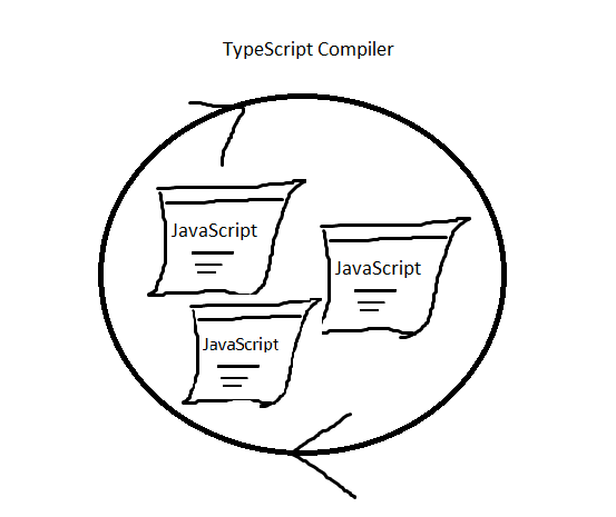 The TypeScript compiler is a transcompiler. That means it takes a TypeScript file and converts it to another programming language, that's JavaScript.