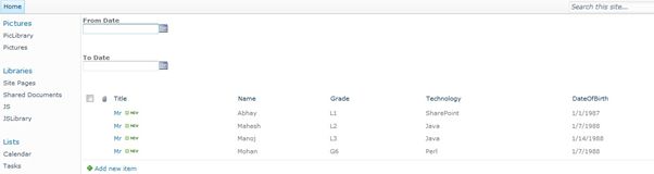 Step 2: Add two date filter Web Parts, one for the "from" date and the other for the "to" date on the page as below.