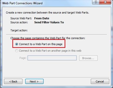 Step 8: Make sure that “Connect to a Web Part on this page” (the default selection) is selected in the next dialog and click "Next".