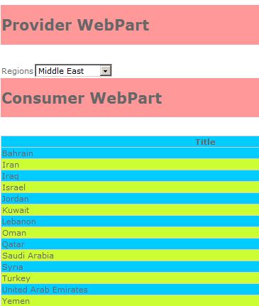 Step 16 : Select region from the provider webpart and you will find the result in the consumer webpart as below.