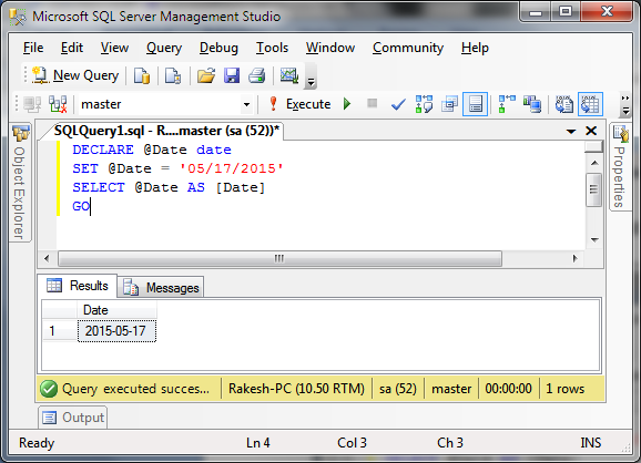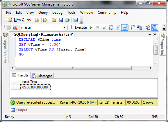 In this use must @ mark initialize for any variable and also use the SELECT or SET keyword.