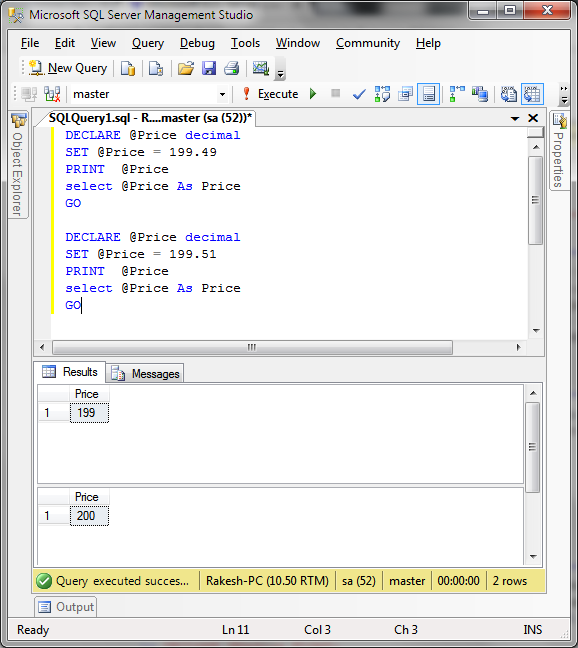 Here we see how to work with SQL Database basic operations such as print data, addition(+), subtraction (-), multiplication (*), division (/) and so on.