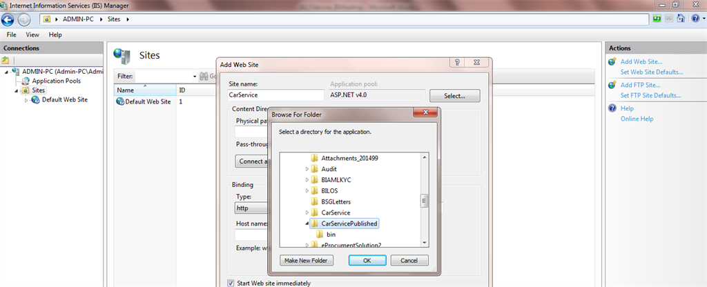 Give the name of the service as CarService and select Application Pool as ASP.NET v4.0 as in the following: