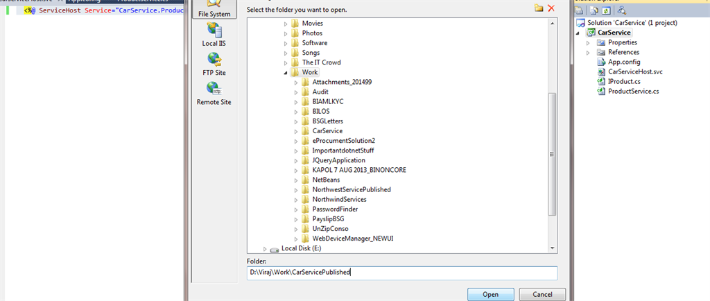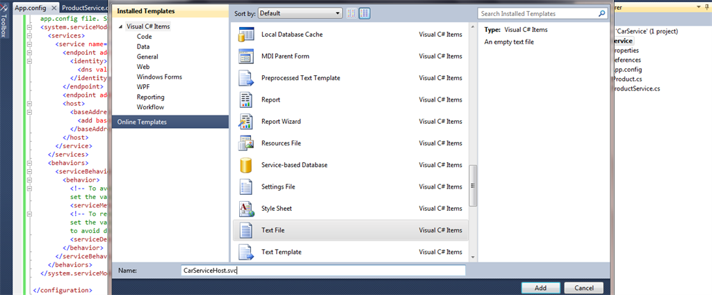 Now add the SVC file to the project so that we can use this file later to publish on IIS.