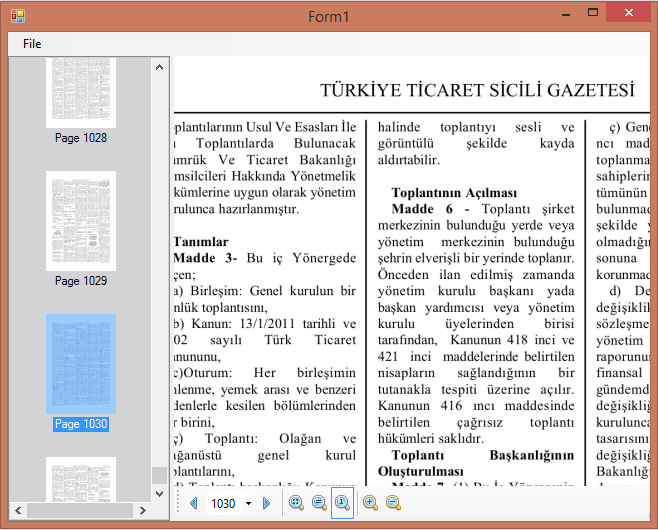 A TIFF file may contain hundreds of pages, so we would not want all of our thumbnails to be loaded at startup. Here, the listview's virtual mode comes to our rescue. In virtual mode, the ListView requests only the thumbnails that are about to be displayed.
