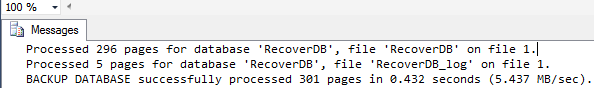 - BACKUP DATABASE RecoverDB