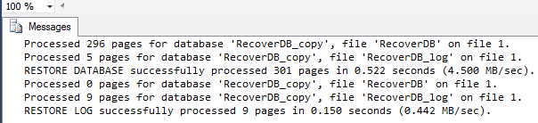 - RESTORE DATABASE RecoverDB_copy
