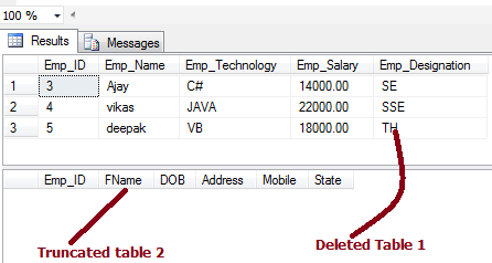Now I will delete some rows from the table named Employee and truncate data from the table Personal_Detail.