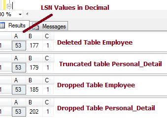 You can see in the receding LSN for Delete and Truncate. To recover data I will be using the STOPBEFOREMARK operation. The LSN value is in hexadecimal format. If I use the STOPBEFOREMARK operation then I need to change this LSN value into decimal format to make a single number.