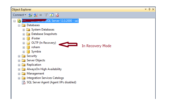 Note that my OLTP database is in the “In Recovery” state. Once all the data is loaded into memory for my Memory-Optimized tables than the database will become available.