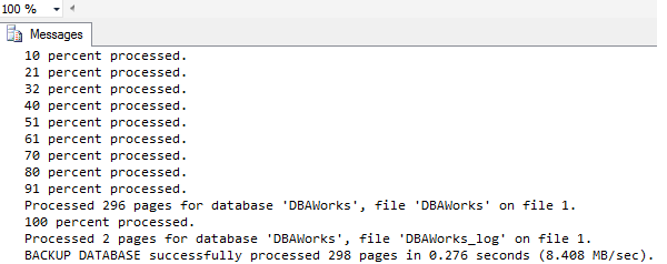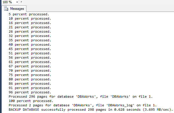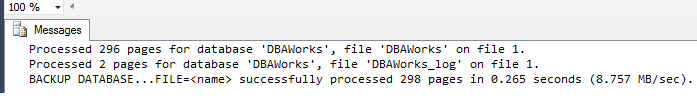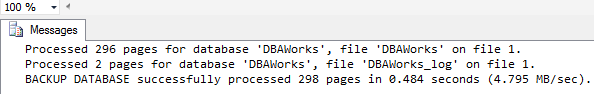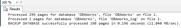 - BACKUP DATABASE [DBAWorks] FILEGROUP = 'PRIMARY'
