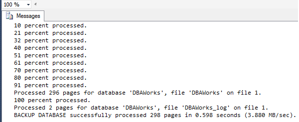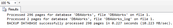 - WITH DESCRIPTION = 'Full backup for DBAWorks'