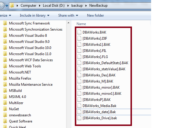 Now I am creating a SQL Server database backup using all the above method of the [DBAWorks] database.