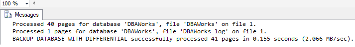 - TO DISK = 'D:\backup\NewBackup\[DBAWorks].DIF'
