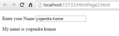 As we will type name in textbox, that text will be shown in paragraph {{name}} expression.