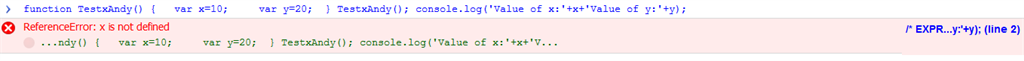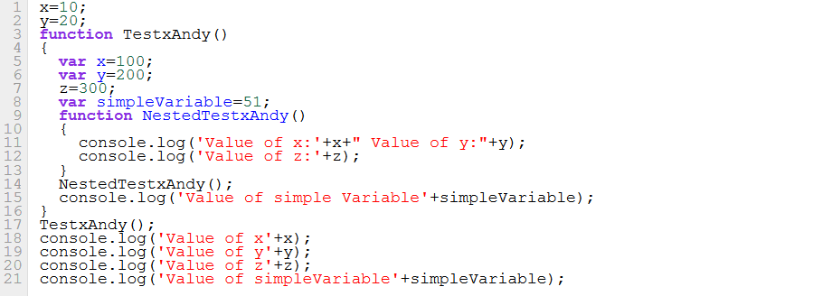 - Once we are done with our code we are invoking the function TestxAndy. Note that TestxAndy internally calls NestedTestxAndy and then we are displaying variable values.