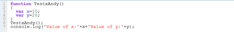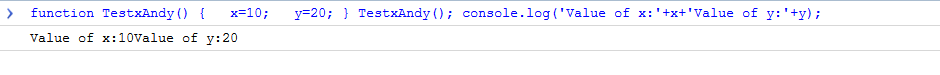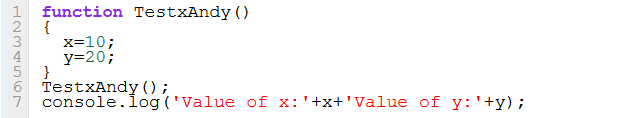 What happened? In our second sample it is throwing a reference error. Well let's understand the reason for that. In the first case, after the function execution, the variables x and y becomes the properties of the global object but that was not the case when you declared the variable using the Case 2 code. In Case 2 x and y are limited to the function, not to x and y, and they are accessible within the function, not outside its boundary.