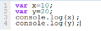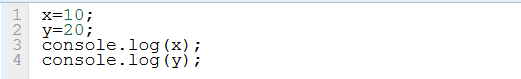 The preceding code is simple, we are declaring the two variables x and y and assigning a value to them.